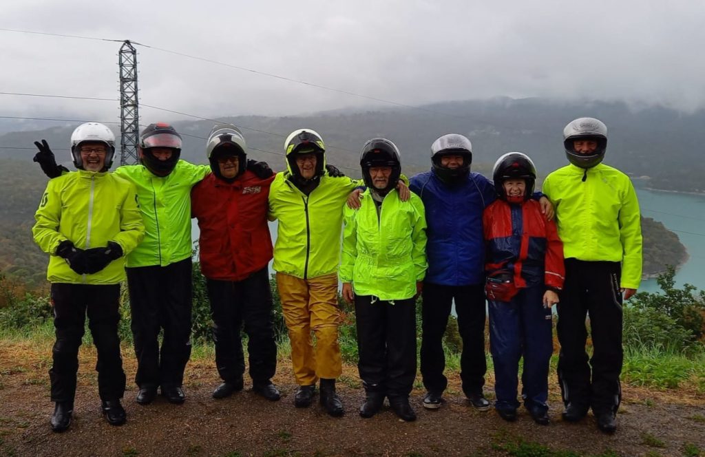 Am Samstag gingen es unterschiedlich weiter, Carla und Beat sind wieder nach Hause wegen eines Termines, Hildi, Erika und Doris mit dem Auto auf Einkaufstour und der Rest nahm bei regnerischen Wetter die Samstag Tour unter die Räder. Gut gelaunt gings los bis dem Lac de Vauglans wo eine Foto – und Aussichtpause machten.
